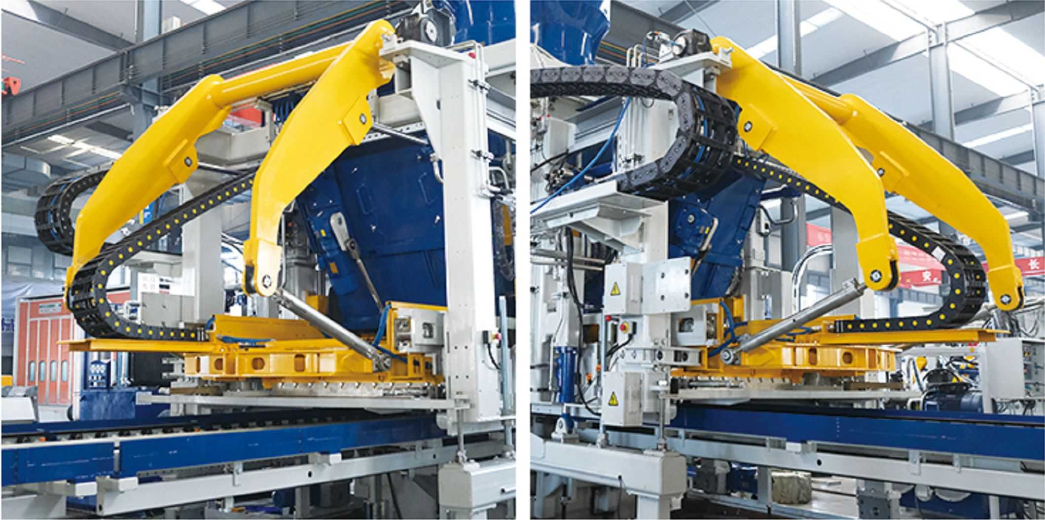 Висококачествен дизайн на рамката: Основната рамка приема високоякостна заварена рамкова конструкция, проектирана с патентована технология, която е заварена от специална стомана. Цялата рамка е подложена на вибрационна обработка при стареене, за да се осигури високо качество и висока стабилност на рамката. Той използва колони с голям диаметър като опора и водач, с висока точност. Отстраняването приема механична синхронизация, прецизно изваждане и висока консистенция на готовите продукти.